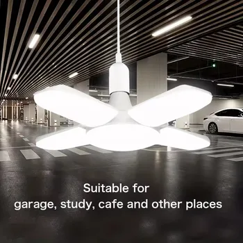 E27 Fan Shape Foldable 28W LED Bulb AC220V/110V Deformation for Home Ceiling Lights Warehouse and Garage White Leaf Light 6500K